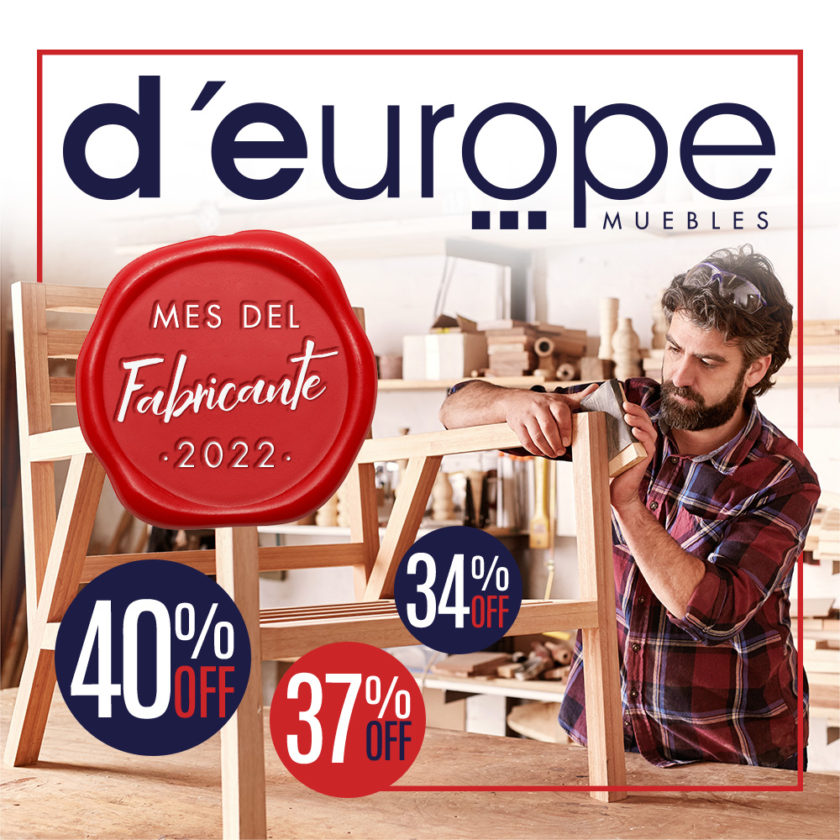 Mes del Fabricante D’europe 22/09/202222/09/2022 adminnico Mes del Fabricante D’europe. Precios válidos hasta 02 de octubre de 2022 o agotar existencias. I.V.A. incluido. Consulta tarjetas participantes para meses sin intereses. *Aplican restricciones.