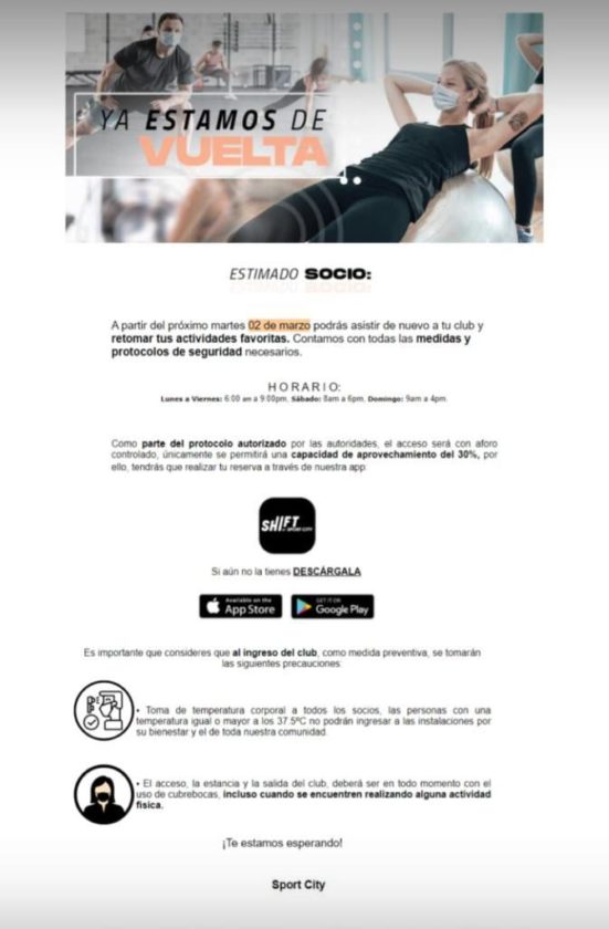 Sport City: Regresamos contigo 27/02/202115/10/2021 adminnico Ante las nuevas disposiciones de gobierno, Sport City San Marcos Power Center, regresa con todas las medidas sanitarias..